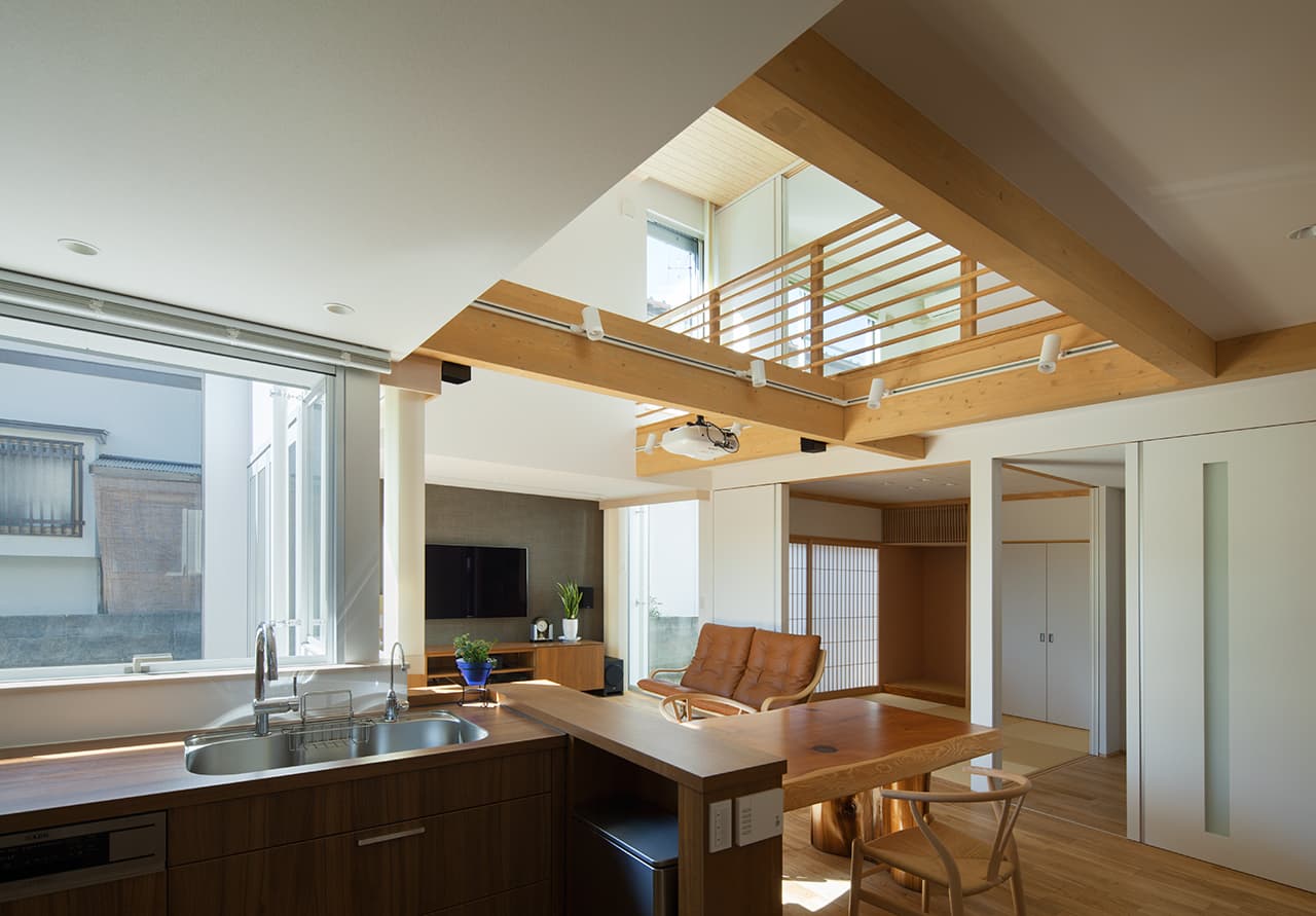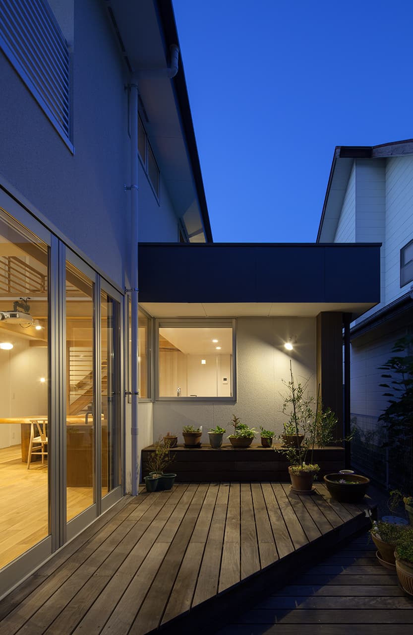 青葉台の家 用 途:専用住宅構造階数:木造2階建て撮 影:針金洋介(Techni Sttaff) 建物の四隅を特徴づけされた外部空間を設け、その外部空間と内部空間を上手につなげることにより、機能的になり、豊かな空間を構築しました。西側の駐車場は2.5m持出の屋根を設けることで、柱が無い広がりのある駐車場となり、雨に濡れることなく車に乗り降りすることが出来ます。 TOP トップ FLOW 設計の流れ WORK 実績紹介 PROFILE プロフィール CONTACT お問合せ 新築住宅 改修 UN BUILD